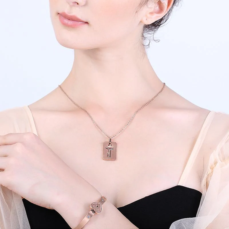 Who has the key to your heart? 💜Show the world how much you love each other with this unique couple bracelet & necklace set.